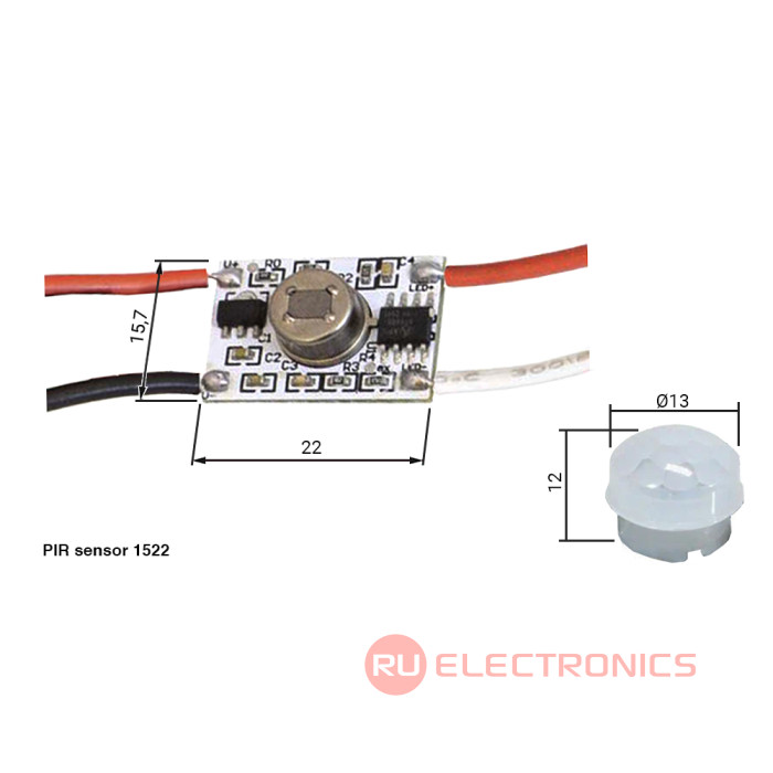Датчик движения RUICHI PIR sensor 1522 wire служит для автоматического включение и выключение освещения в помещении и на открытом воздухе. Датчик срабатывает при условиях низкого освещения, когда пересекается зона чувствительности, датчик запускается, когда обнаружит движение. Использование датчика позволяет контролировать электропотребление.