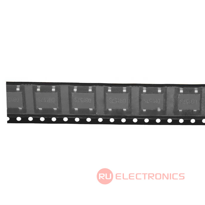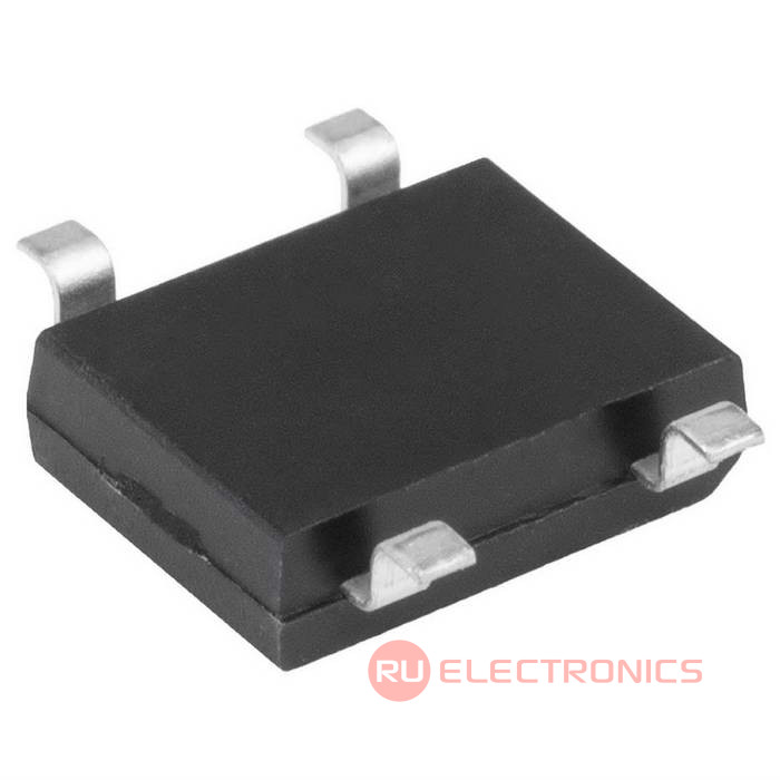 DB157S однофазный диодный мост для поверхностного монтажа в корпусе DBS. Максимальное обратное напряжение (Vrrm) 1000 В, максимальный прямой ток (If(av)) 1.5 А, падение напряжения (Vf) 1.1 В. Размер (ДхШхВ) 8,8 х 8,5 х 3,4 мм.