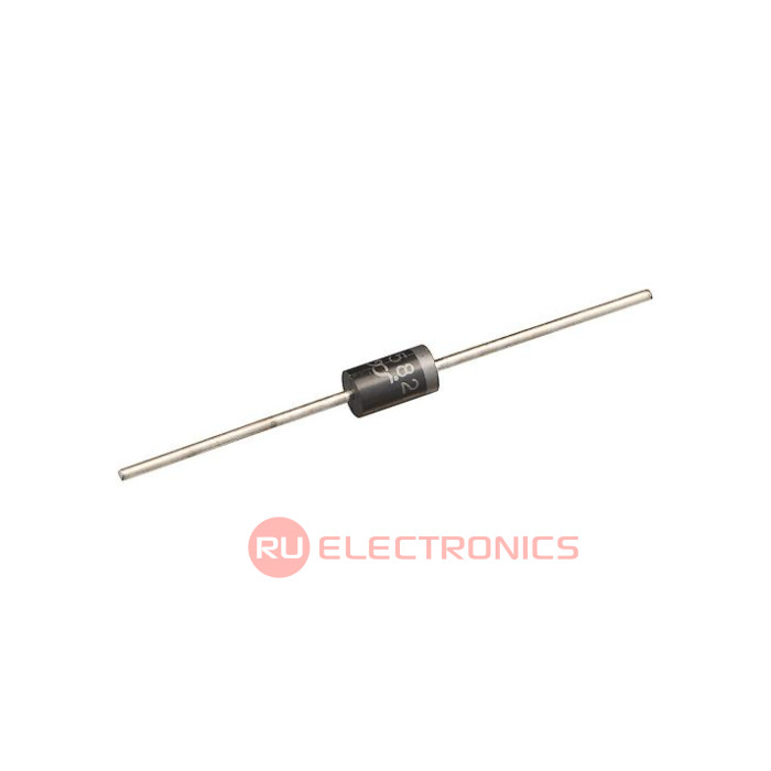 Корпус DO201AD , Схема включения диодов одиночный , Максимальное обратное напряжение диода 1 кВ, Прямой ток диода (средний) 3 А, Прямое падение напряжения 1.1 В, Особенности General Purpose , Обратный ток диода 2.5 мкА, Емкость перехода 40 пФ, Рабочая температура -55 °C, Рабочая температура 150 °C, Монтаж на плату, THT