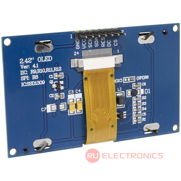 2.42-дюймовый OLED-дисплей модуль RUICHI DSM-OLED-2.42-7P-G с разрешением 128x64 пикселей обеспечивает яркое и чёткое изображение зелёного цвета. Благодаря поддержке интерфейсов SPI и I2C дисплей легко интегрируется в Arduino, STM32 и другие микроконтроллерные платформы. Модуль отличается низким энергопотреблением, высокой контрастностью и отличной читаемостью под разными углами, что делает его отличным выбором для DIY-проектов, портативных устройств и интеллектуальной электроники.