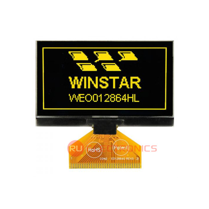 Диагональ видимой части 2.42 ", Тип дисплея OLED , Режим графический , Разрешение 128х64 , Тип встроенного контроллера SSD1309ZC , Цвет отображения информации жёлтый , Особенности COG , Напряжение питания, min 2.8 В, Напряжение питания, max 3.3 В, Длина 60.5 мм, Ширина 37 мм, Высота 2.15 мм, Рабочая температура -40 °C, Рабочая температура 80 °C, Примечания 6800, 8080, SPI, I2C