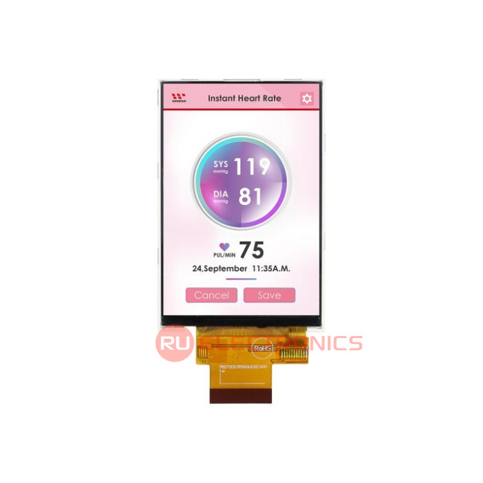Диагональ экрана (дюймов) 3.5 , Разрешение экрана 320x480 , Входной интерфейс RGB , Яркость 600 кд/м², Длина 83 мм, Ширина 54.5 мм, Высота 2.46 мм, Напряжение питания, min 3.3 В, Напряжение питания, max 3.3 В, Рабочая температура -20 °C, Рабочая температура 70 °C