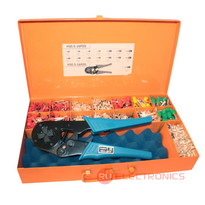 | Тип инструмента | Комплект кримпера HS0.5-16PZD для обжима кабельных наконечников с набором втулок в ящике для переноски |