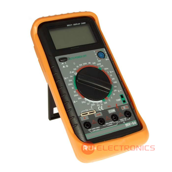 | Дополнительные функции | 1) диодный тест; 2) тест проводимости (при R менее 50 Ом); 3) тест транзисторов; режим HOLD |