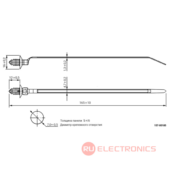 Кабельная стяжка с крепежной клипсой RUICHI, установочное отверстие 7 мм, 166.3х4.7 мм, охват 30 мм, PA66, цвет черный