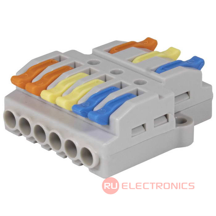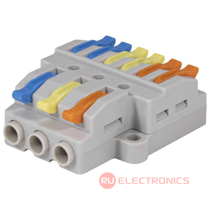| Наименование | Зажим-клемма 3х2 прохадная разветвительная на 3 полюса |