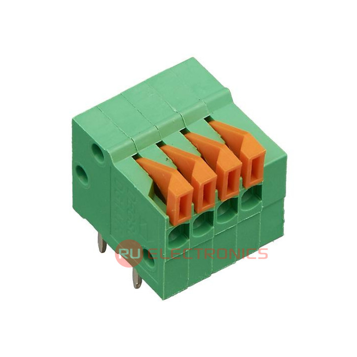 Клеммные колодки с пружинным зажимом для монтажа на печатную плату. Все колодки изготавливаются из качественных материалов - пружины из нержавеющей стали, контакты из медного сплава покрытого оловом. Полиамидный (PA66) корпус отличается высокой механической прочностью, низким влагопоглощением и классом устойчивости к воспламенению UL94-V0. Диапазон рабочей температуры изделий от -40 до 105 °С. Конструкция колодок предусматривает возможность соединения нескольких блоков для получения необходимого количества контактов.