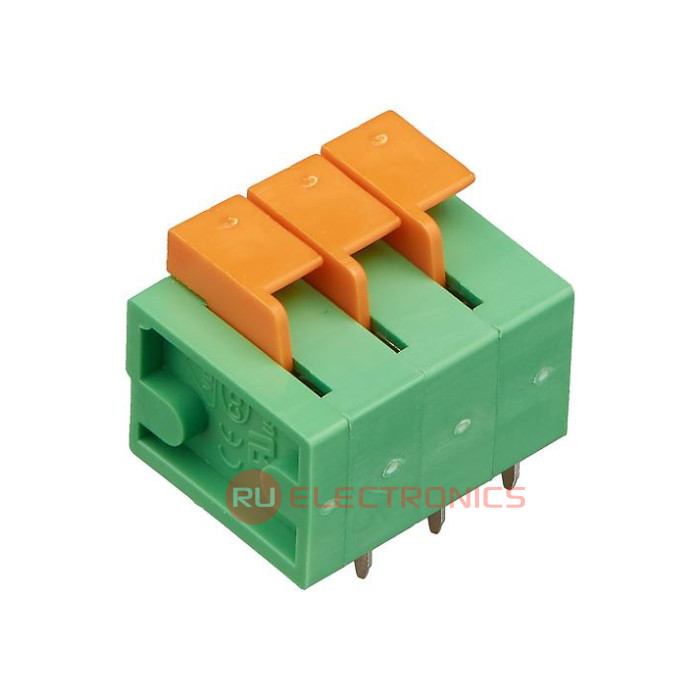 Клеммные колодки с пружинным зажимом для монтажа на печатную плату. Все колодки изготавливаются из качественных материалов - пружины из нержавеющей стали, контакты из медного сплава покрытого оловом. Полиамидный (PA66) корпус отличается высокой механической прочностью, низким влагопоглощением и классом устойчивости к воспламенению UL94-V0. Диапазон рабочей температуры изделий от -40 до 105 °С. Конструкция колодок предусматривает возможность соединения нескольких блоков для получения необходимого количества контактов.