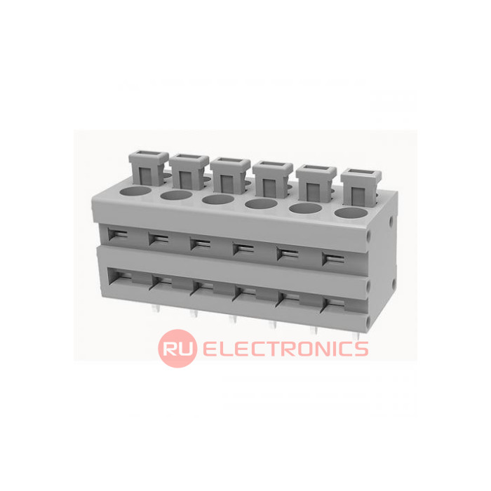 Шаг между контактами 5 мм, Тип разъема Клеммник на плату , Количество контактов 6 , Рабочий ток контактов 8 А, Рабочее напряжение между контактами 300 В, Сечение присоединяемых проводов, min 0.2 мм², Сечение присоединяемых проводов, max 1.5 мм², Способ фиксации провода Пружина , Цвет корпуса Серый , Конструктивное исполнение Прямой , Направление ввода к плате 90°