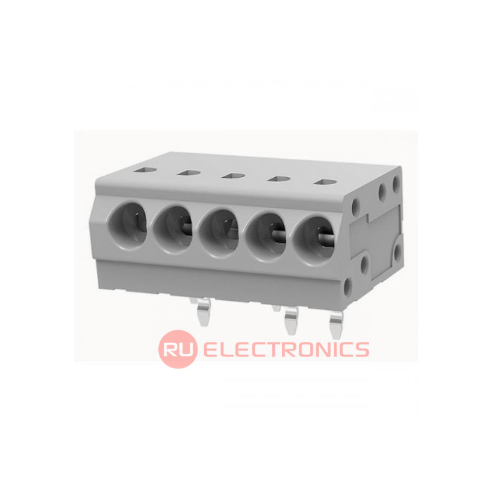 Шаг между контактами 3.5 мм, Тип разъема Клеммник на плату , Количество контактов 5 , Рабочий ток контактов 4 А, Рабочее напряжение между контактами 300 В, Сечение присоединяемых проводов, min 0.2 мм², Сечение присоединяемых проводов, max 0.75 мм², Способ фиксации провода Пружина , Цвет корпуса Серый , Конструктивное исполнение Угловой , Направление ввода к плате 180°
