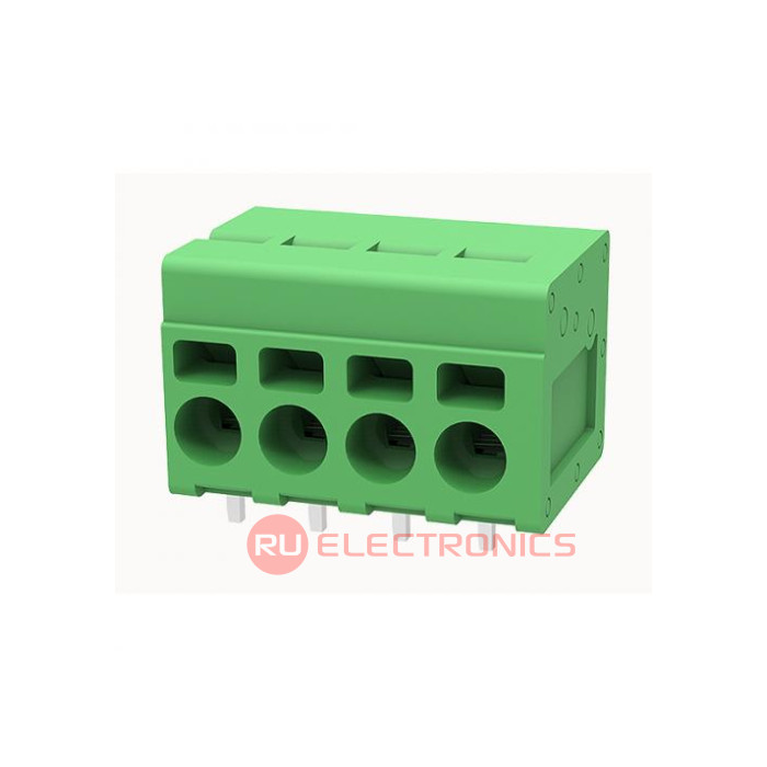 Шаг между контактами 5 мм, Тип разъема Нажимной клеммник , Количество контактов 4 , Рабочий ток контактов 20 А, Рабочее напряжение между контактами 300 В, Сечение присоединяемых проводов, min 0.2 мм², Сечение присоединяемых проводов, max 4 мм², Способ фиксации провода Пружина , Цвет корпуса Зеленый , Конструктивное исполнение Угловой , Направление ввода к плате 180°