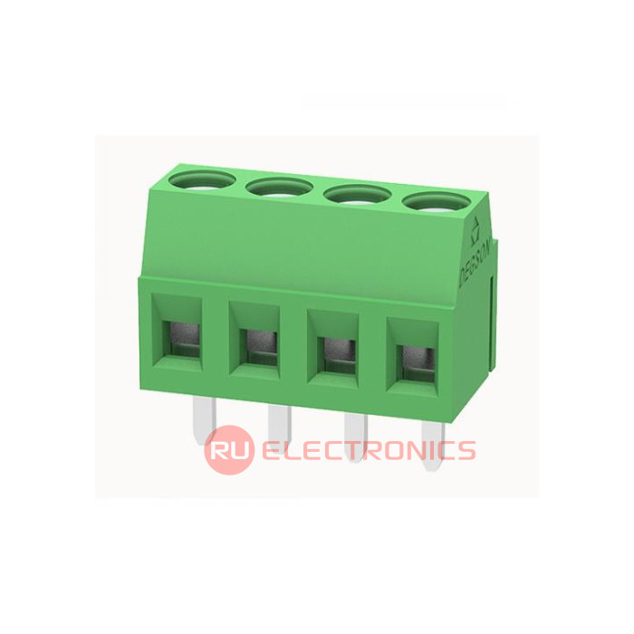 Шаг между контактами 3.5 мм, Тип разъема Клеммник на плату , Количество контактов 4 , Рабочий ток контактов 10 А, Рабочее напряжение между контактами 150 В, Сечение присоединяемых проводов, min 0.2 мм², Сечение присоединяемых проводов, max 1.5 мм², Способ фиксации провода Винт , Цвет корпуса Зеленый , Конструктивное исполнение Прямой , Направление ввода к плате 180° , Примечания Barrier Strip Terminal Block, 10A, 1mm2, 1 Row(s), 1 Deck(s)