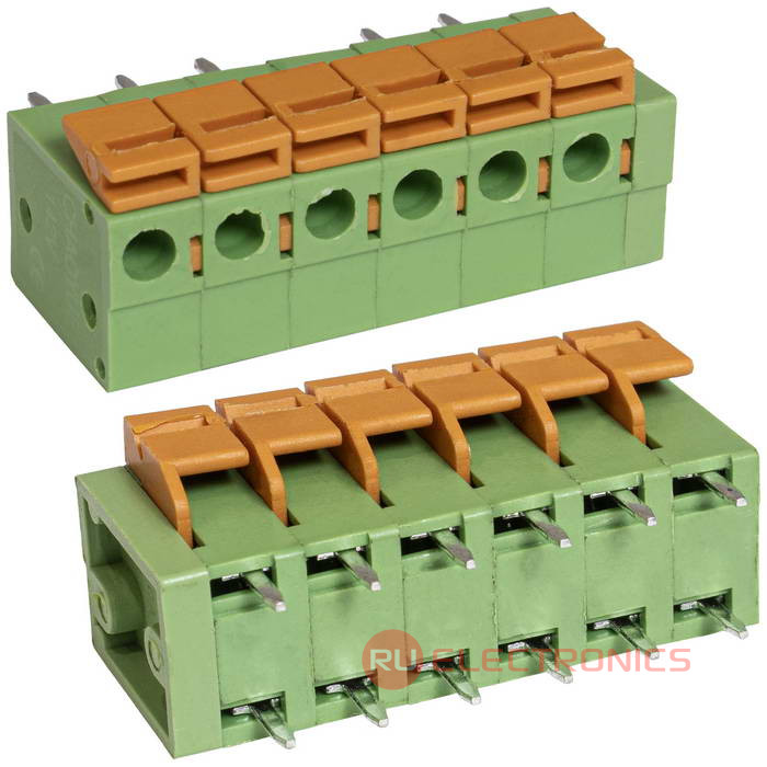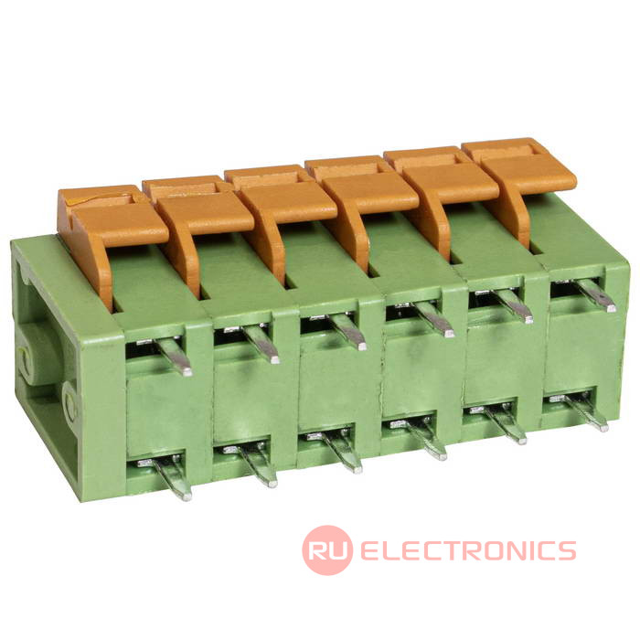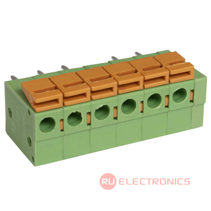 Тип | нажимной модульный клеммный блок, на плату, 6 контактов, серии RG142V-5.08 |