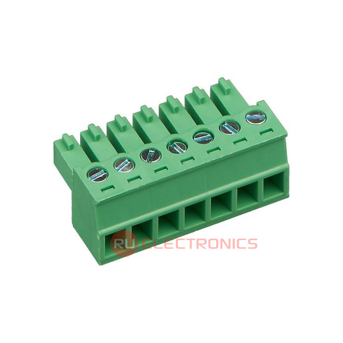 Шаг между контактами 3.81 мм, Тип разъема Клеммник на провод , Количество контактов 7 , Рабочий ток контактов 8 А, Рабочее напряжение между контактами 300 В, Сечение присоединяемых проводов, min 0.5 мм², Сечение присоединяемых проводов, max 1.5 мм², Способ фиксации провода Винт , Цвет корпуса Зеленый , Конструктивное исполнение Прямой , Направление ввода к плате 180° , Примечания Barrier Strip Terminal Block, 8A, 1.5mm2, 1 Row(s), 1 Deck(s)