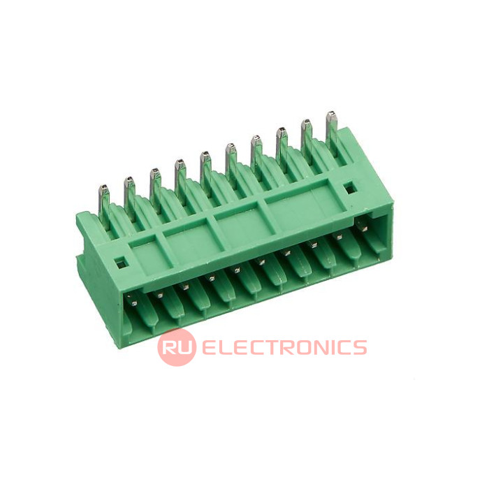 Шаг между контактами 2.5 мм, Тип разъема Клеммник на плату , Количество контактов 10 , Рабочий ток контактов 4 А, Рабочее напряжение между контактами 150 В, Способ фиксации провода нет , Цвет корпуса Зеленый , Конструктивное исполнение Угловой , Направление ввода к плате 180° , Примечания Strip Terminal Block, 4A, 1 Row(s), 1 Deck(s)