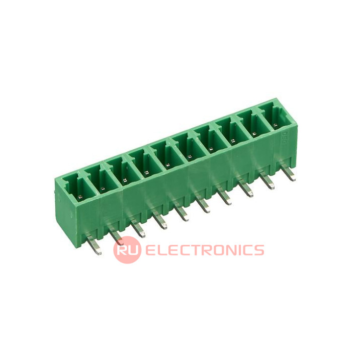 Шаг между контактами 3.81 мм, Тип разъема Клеммник на плату , Количество контактов 10 , Рабочий ток контактов 8 А, Рабочее напряжение между контактами 300 В, Способ фиксации провода нет , Цвет корпуса Зеленый , Конструктивное исполнение Угловой , Направление ввода к плате 180° , Примечания Barrier Strip Terminal Block, 8A, 1 Row(s), 1 Deck(s)