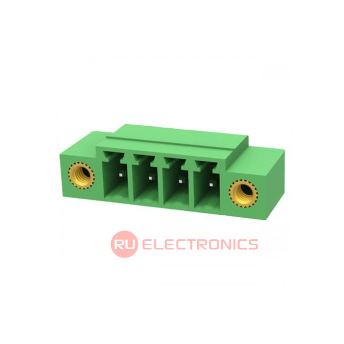 Шаг между контактами 3.81 мм, Тип разъема Клеммник на плату , Количество контактов 4 , Рабочий ток контактов 8 А, Рабочее напряжение между контактами 300 В, Способ фиксации провода нет , Цвет корпуса Зеленый , Конструктивное исполнение Угловой , Направление ввода к плате 180° , Примечания С фиксирующими винтами