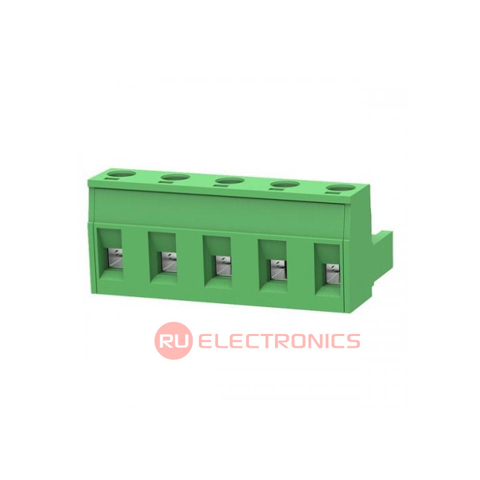 Шаг между контактами 7.62 мм, Тип разъема Клеммник на провод , Количество контактов 5 , Рабочий ток контактов 15 А, Рабочее напряжение между контактами 300 В, Сечение присоединяемых проводов, min 0.2 мм², Сечение присоединяемых проводов, max 2.5 мм², Способ фиксации провода Винт , Цвет корпуса Зеленый , Конструктивное исполнение Прямой , Направление ввода к плате 180°