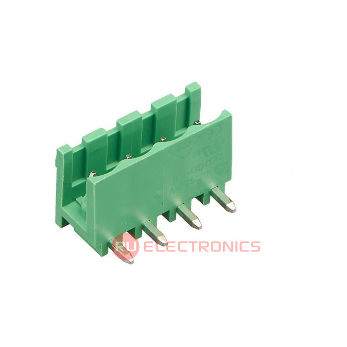 Шаг между контактами 5 мм, Тип разъема Клеммник на плату , Количество контактов 4 , Рабочий ток контактов 15 А, Рабочее напряжение между контактами 300 В, Способ фиксации провода нет , Цвет корпуса Зеленый , Конструктивное исполнение Угловой , Направление ввода к плате 180° , Примечания Strip Terminal Block, 15A, 1 Row(s), 1 Deck(s)