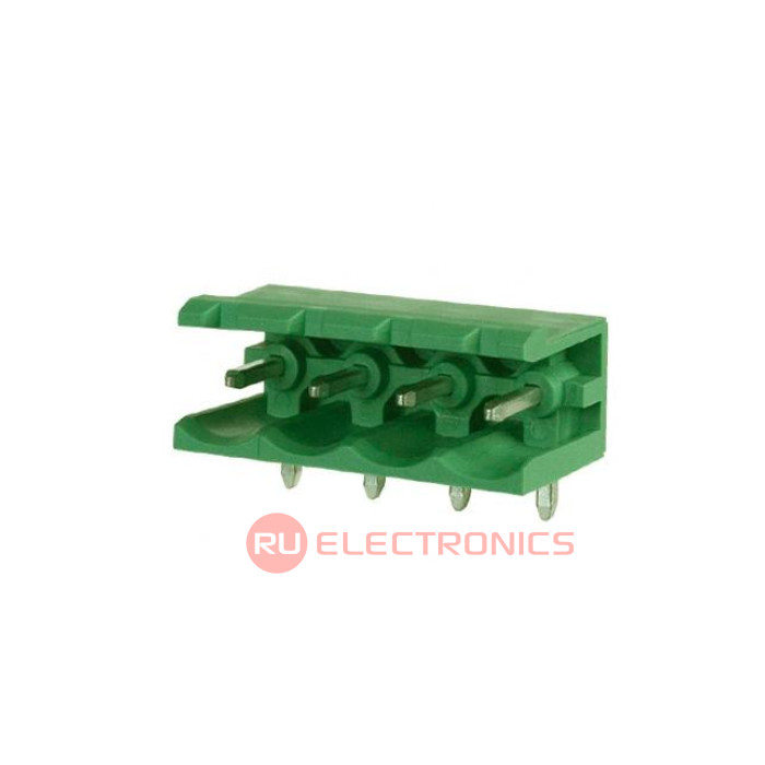 Шаг между контактами 5 мм, Тип разъема Клеммник на плату , Количество контактов 3 , Рабочий ток контактов 15 А, Рабочее напряжение между контактами 300 В, Цвет корпуса Зеленый , Конструктивное исполнение Угловой , Примечания Pluggable Terminal Block,Female/PCB Dip 90,Pitch 5.00mm,03Pin,Green.