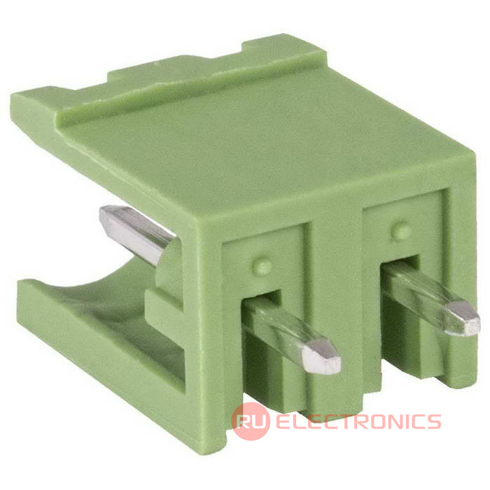 Клеммник разъемный прямой, вилка (M) SZC XY2500V-A-02P, 2 контакта с шагом 5,0 мм, 12 А, 2,5 мм?, -40…+100 °С, PA66 – это конструкции, состоящие из 2-х частей. Одна из которых крепится на плате, а вторая – непсредственно на кабеле. Для соединения подвижная часть клеммника вставляется в неподвижную и фиксируется зажимной пластиной.