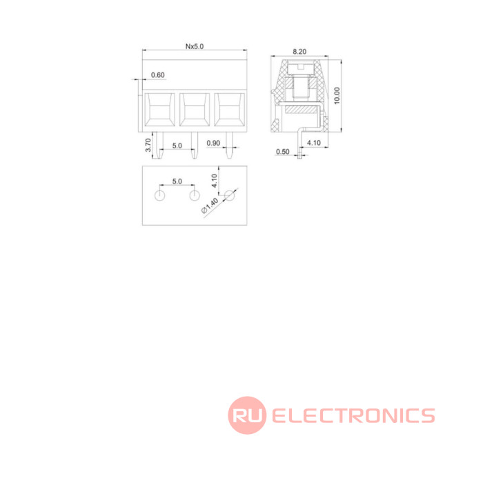 | Тип | винтовой модульный клеммный блок, на плату, 3 контакта, серии RG127R-5.00 |