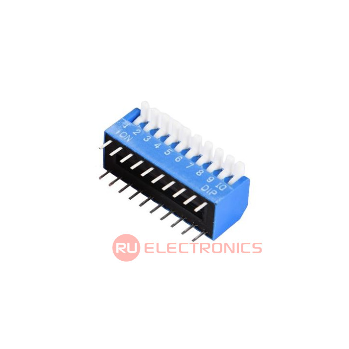 Тип компонента Переключатель , Тип переключателя DIP , Цепь переключателя SPST , Количество контактных групп 10 , Шаг выводов 2.54 , Стиль актуатора Piano , Нагрузочная способность контактов 0.025 A, Тип монтажа Сквозные отверстия