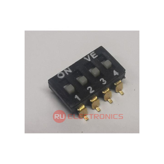 Тип компонента Переключатель , Тип переключателя DIP , Цепь переключателя SPST , Количество контактных групп 4 , Шаг выводов 2.54 , Стиль актуатора Slide , Нагрузочная способность контактов 0.025 A, Тип монтажа Поверхностный