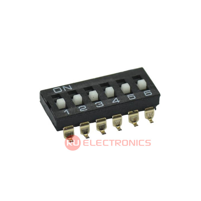 Тип компонента Переключатель , Тип переключателя DIP , Цепь переключателя SPST , Количество контактных групп 6 , Шаг выводов 2.54 , Стиль актуатора Slide , Нагрузочная способность контактов 0.025 A, Тип монтажа Поверхностный
