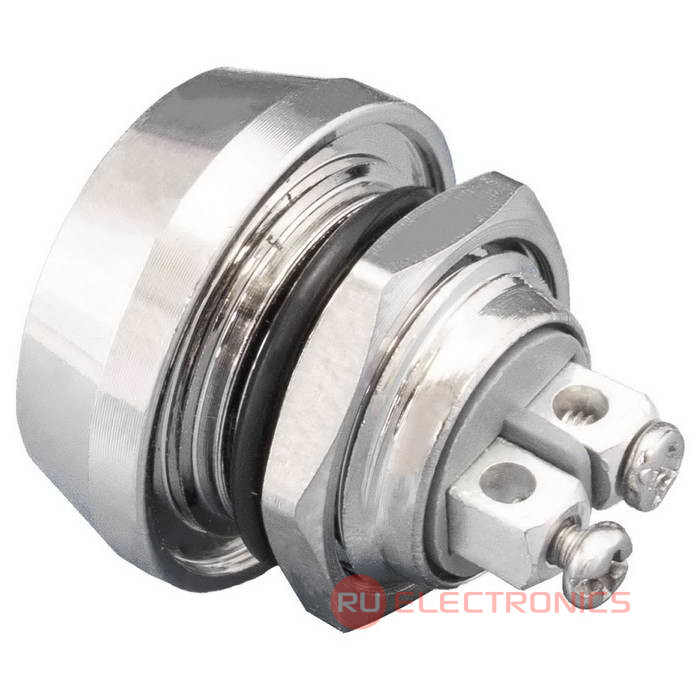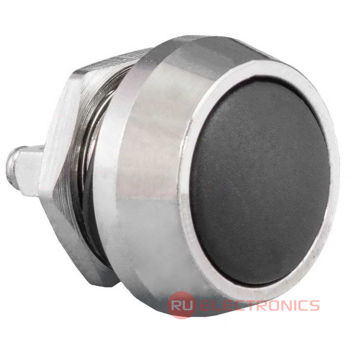 Кнопка антивандальная без подсветки RUICHI GQ12B-10/B/N, 1NO, ОFF-(ON) без фиксации, пос. диаметр 12 мм, контакты 2S, 2 А, 50 мОм, -20...+55 °C, корпус никелированная латунь, кнопка черная максимально долговечна и надежна. Устройство способно безотказно работать при частой эксплуатации и самых тяжелых условиях. Именно поэтому такие кнопки устанавливаются в тех местах, где существует повышенный риск повреждения, например, на производственных предприятиях или объектах с большой проходимостью людей. Антивандальные кнопки часто можно встретить в лифтах, около входных дверей зданий или метрополитене.