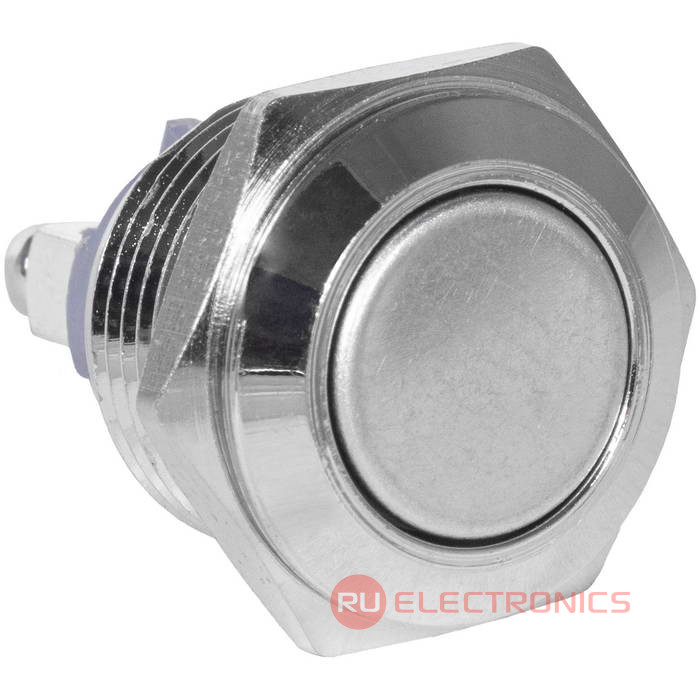 Кнопка антивандальная RUICHI GQ16F-10/N, OFF-(ON), рабочая температура -25…+55 °C, никелированная латунь