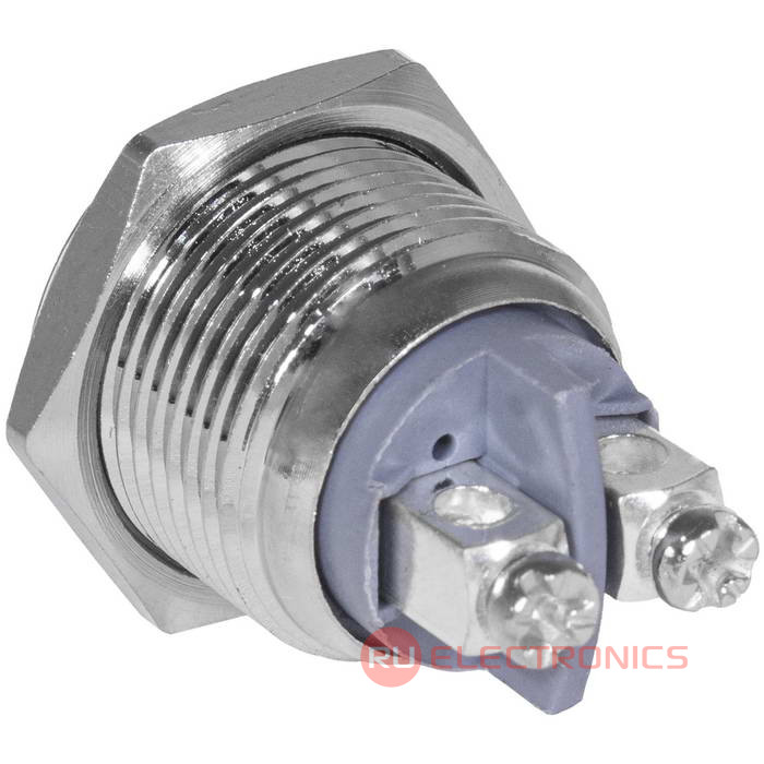 Кнопка антивандальная RUICHI GQ16F-10/N, OFF-(ON), рабочая температура -25…+55 °C, никелированная латунь максимально долговечна и надежна. Устройство способно безотказно работать при частой эксплуатации и самых тяжелых условиях. Именно поэтому такие кнопки устанавливаются в тех местах, где существует повышенный риск повреждения, например, на производственных предприятиях или объектах с большой проходимостью людей. Антивандальные кнопки часто можно встретить в лифтах, около входных дверей зданий или метрополитене.