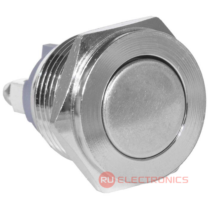 Кнопка антивандальная RUICHI GQ16PF-10/N, OFF-(ON), рабочая температура -25…+55 °C, никелированная латунь максимально долговечна и надежна. Устройство способно безотказно работать при частой эксплуатации и самых тяжелых условиях. Именно поэтому такие кнопки устанавливаются в тех местах, где существует повышенный риск повреждения, например, на производственных предприятиях или объектах с большой проходимостью людей. Антивандальные кнопки часто можно встретить в лифтах, около входных дверей зданий или метрополитене.