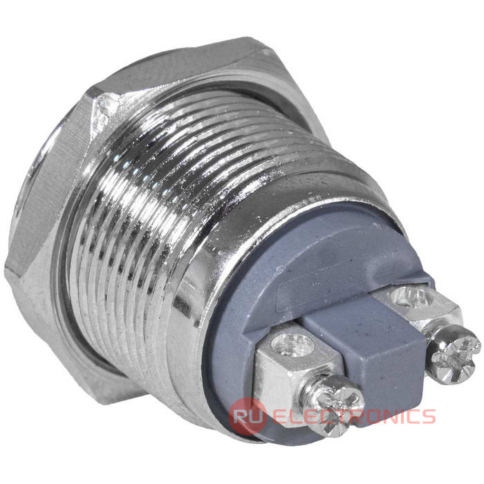 Кнопка антивандальная RUICHI GQ19B-10/N, OFF-(ON), рабочая температура -25…+55 °C, никелированная латунь максимально долговечна и надежна. Устройство способно безотказно работать при частой эксплуатации и самых тяжелых условиях. Именно поэтому такие кнопки устанавливаются в тех местах, где существует повышенный риск повреждения, например, на производственных предприятиях или объектах с большой проходимостью людей. Антивандальные кнопки часто можно встретить в лифтах, около входных дверей зданий или метрополитене.