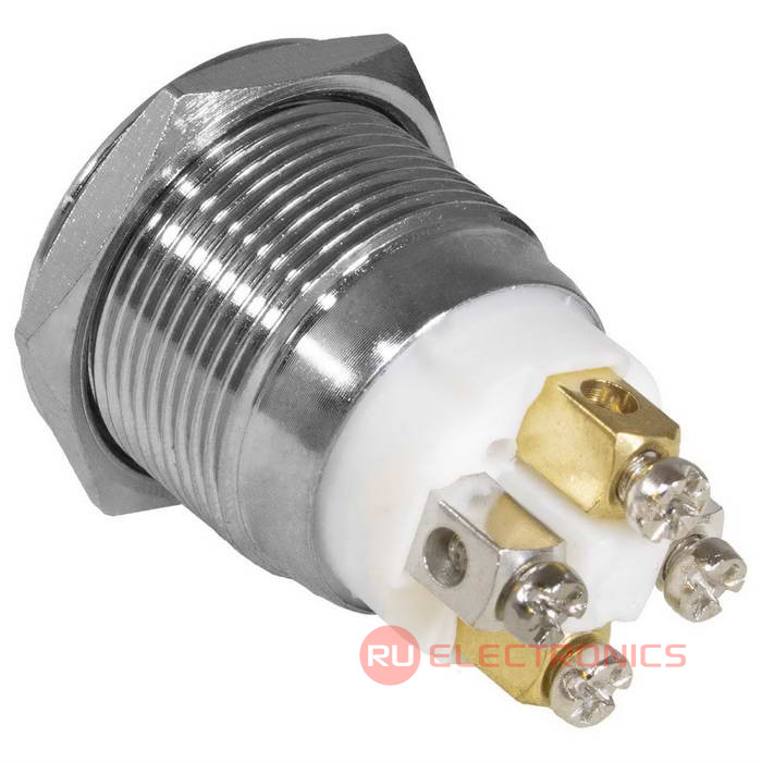 Кнопка антивандальная RUICHI GQ19F-10E/B/N, OFF-(ON), рабочая температура -25…+55 °C, никелированная латунь максимально долговечна и надежна. Устройство способно безотказно работать при частой эксплуатации и самых тяжелых условиях. Именно поэтому такие кнопки устанавливаются в тех местах, где существует повышенный риск повреждения, например, на производственных предприятиях или объектах с большой проходимостью людей. Антивандальные кнопки часто можно встретить в лифтах, около входных дверей зданий или метрополитене.
