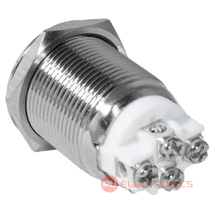 Кнопка антивандальная RUICHI GQ19F-10ZD/G/N, OFF-ON, рабочая температура -25…+55 °C, никелированная латунь максимально долговечна и надежна. Устройство способно безотказно работать при частой эксплуатации и самых тяжелых условиях. Именно поэтому такие кнопки устанавливаются в тех местах, где существует повышенный риск повреждения, например, на производственных предприятиях или объектах с большой проходимостью людей. Антивандальные кнопки часто можно встретить в лифтах, около входных дверей зданий или метрополитене.