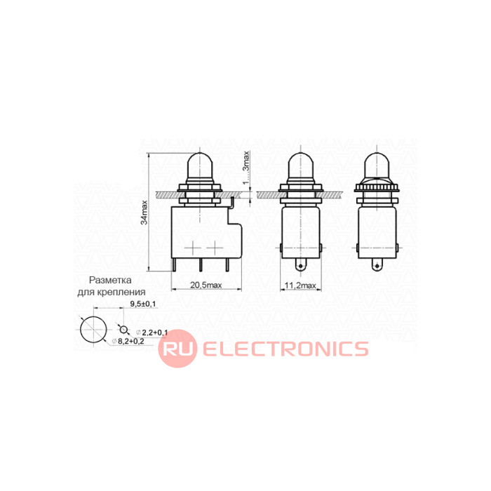 Усилие переключения - от 2,45 Н до 12,8 Н