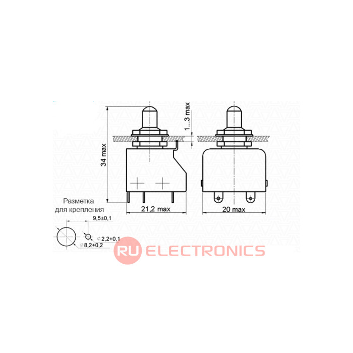 Усилие переключения - от 2,45 Н до 12,8 Н
