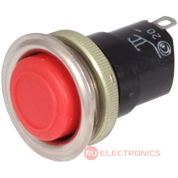 Кнопочный переключатель К1-2П (20-й диаметр металл), Смоленский завод радиодеталей, 5 А, 250 В