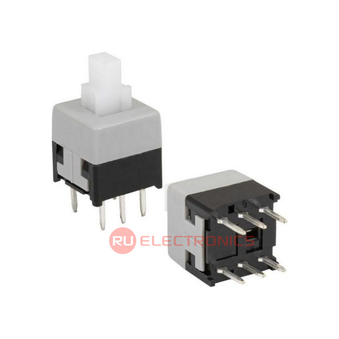 Тип компонента Переключатель , Тип переключателя Push , Нагрузочная способность контактов 0.3 A, Тип монтажа Сквозные отверстия , Примечание KLS7-P8.5X8.5B Push Switch Series,With Lock.