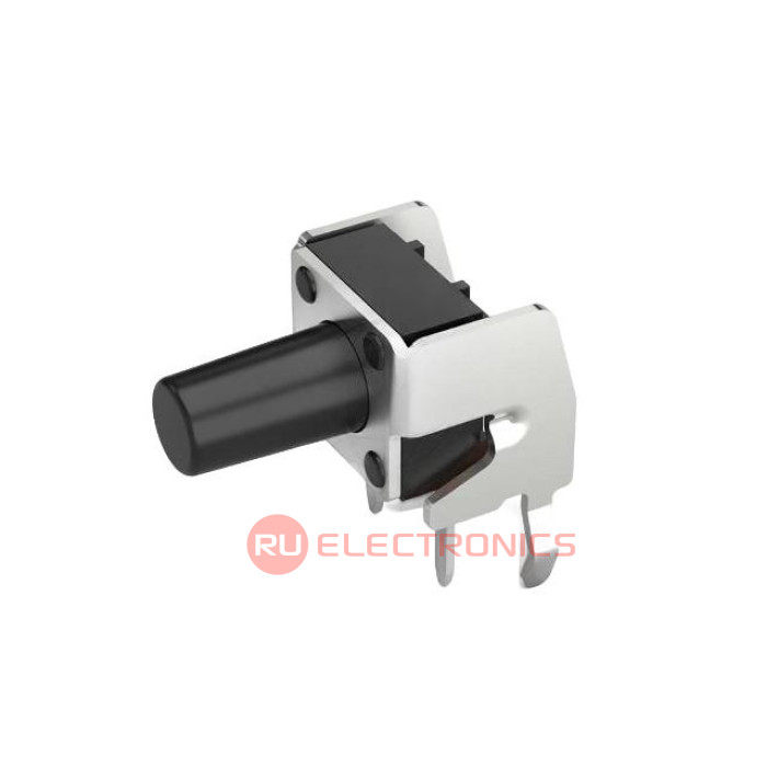 Максимальный рабочий ток 100 мА, Максимальное рабочее напряжение 30 В, Тип актуатора круглая кнопка , Тип монтажа в отверстия , Относительная ориентация на плате угловая , Сила нажатия для переключения 160 гс
