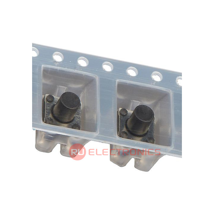 Электрическая цепь контактной группы SPST , Максимальный рабочий ток 50 мА, Максимальное рабочее напряжение 12 В, Тип актуатора круглая кнопка , Тип монтажа поверхностный , Относительная ориентация на плате прямая , Сила нажатия для переключения 180 гс, Особенности Одиночное включение