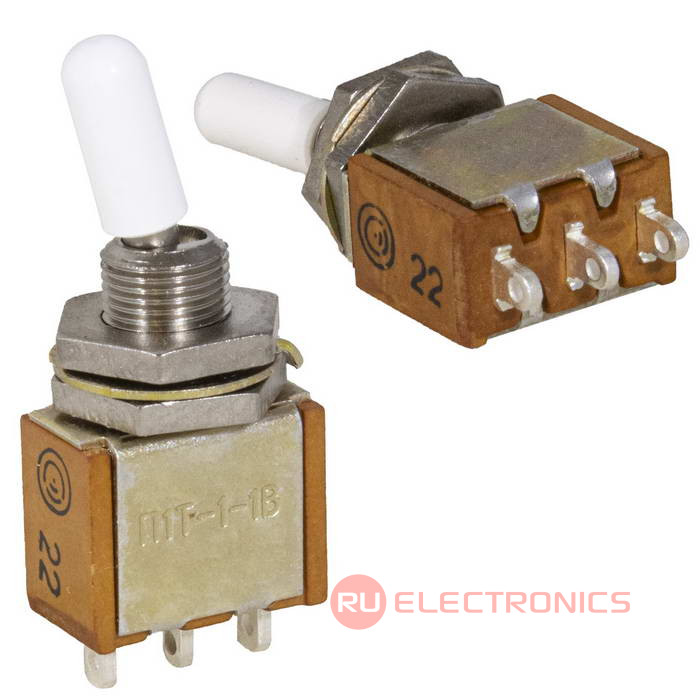 Кнопочный переключатель К1-1П (20-й диаметр металл), Смоленский завод радиодеталей, 5 А, 250 В