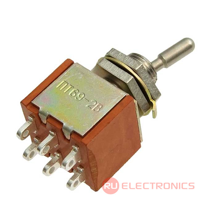 Тумблер ПТ69-2В, Смоленский завод радиодеталей, 220 В, 6 А