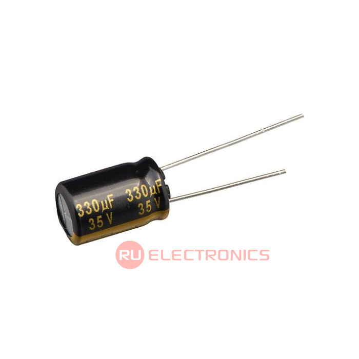 Ёмкость номинальная 330 мкФ, Допуск по ёмкости ±20% , Напряжение номинальное 35 В, Температура рабочая, min -40 °C, Температура рабочая, max 105 °C, Срок службы 4000 ч, Диаметр корпуса 10 мм, Высота корпуса 16 мм, Способ монтажа Radial , Шаг между выводами 5 мм, Длина 10 мм, Ширина 10 мм, Высота 16 мм, Примечание Aluminum Electrolytic Capacitor, Polarized, Aluminum (wet), 35V, 20% +Tol, 20% -Tol, 330uF, Through Hole Mount