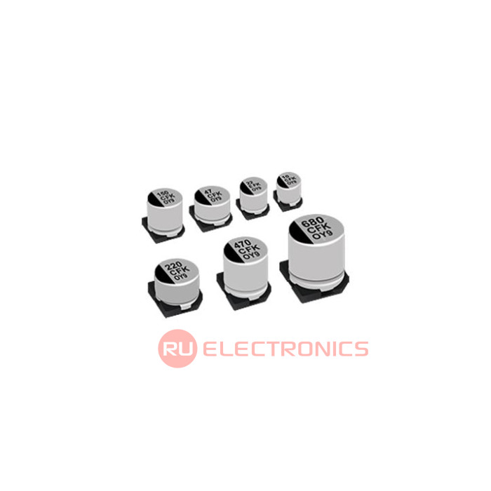 Ёмкость номинальная 470 мкФ, Допуск по ёмкости ±20% , Напряжение номинальное 50 В, Температура рабочая, min -55 °C, Температура рабочая, max 105 °C, Срок службы 5000 ч, Диаметр корпуса 16 мм, Высота корпуса 16.5 мм, Способ монтажа SMD , Высота 17 мм, Примечание Aluminum Electrolytic Capacitor, Polarized, Aluminum (wet), 50V, 20% +Tol, 20% -Tol, 470uF, Surface Mount, 6767