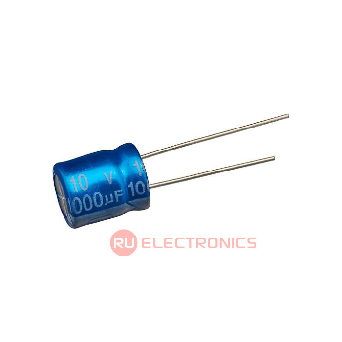 Ёмкость номинальная 1 000 мкФ, Допуск по ёмкости ±20% , Напряжение номинальное 10 В, Температура рабочая, min -40 °C, Температура рабочая, max 105 °C, Срок службы 2000 ч, Диаметр корпуса 10 мм, Высота корпуса 12 мм, Способ монтажа Radial , Шаг между выводами 5 мм