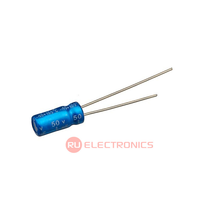 Ёмкость номинальная 1 мкФ, Допуск по ёмкости ±20% , Напряжение номинальное 50 В, Температура рабочая, min -40 °C, Температура рабочая, max 105 °C, Срок службы 2000 ч, Диаметр корпуса 5 мм, Высота корпуса 11 мм, Способ монтажа Radial , Шаг между выводами 2 мм, Длина 5 мм, Ширина 5 мм, Высота 11 мм, Примечание Aluminum Electrolytic Capacitor, Polarized, Aluminum (wet), 50V, 20% +Tol, 20% -Tol, 1uF, Through Hole Mount