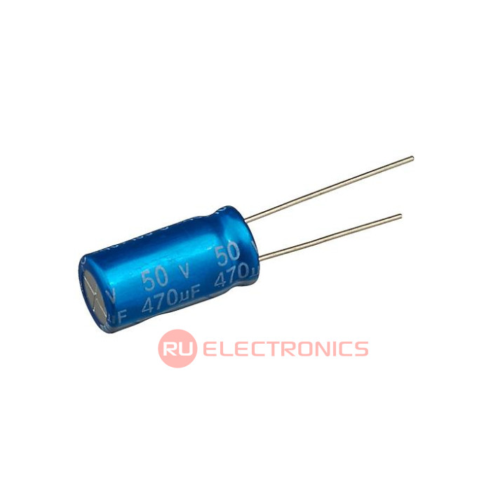 Ёмкость номинальная 470 мкФ, Допуск по ёмкости ±20% , Напряжение номинальное 50 В, Температура рабочая, min -40 °C, Температура рабочая, max 105 °C, Срок службы 2000 ч, Диаметр корпуса 10 мм, Высота корпуса 20 мм, Способ монтажа Radial , Шаг между выводами 5 мм, Примечание Miniature and large capacity