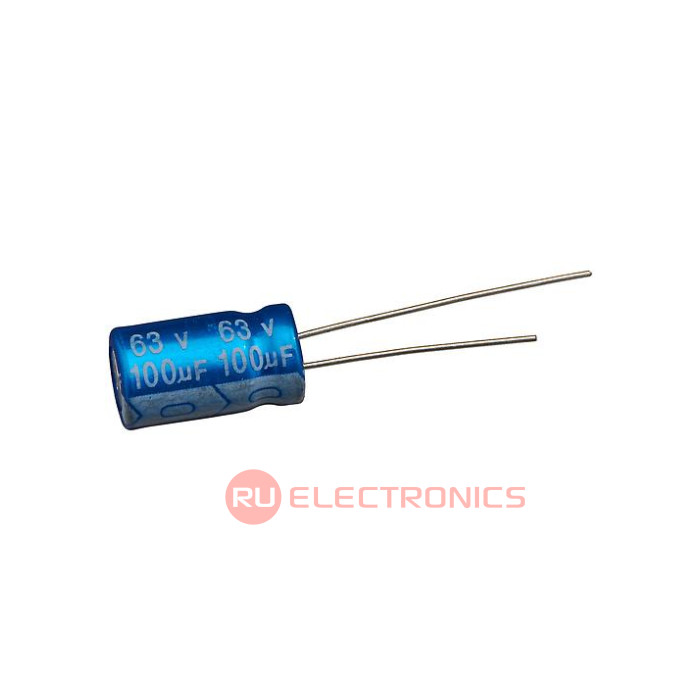 Ёмкость номинальная 100 мкФ, Допуск по ёмкости ±20% , Напряжение номинальное 63 В, Температура рабочая, min -40 °C, Температура рабочая, max 105 °C, Срок службы 2000 ч, Диаметр корпуса 8 мм, Высота корпуса 14 мм, Способ монтажа Radial , Шаг между выводами 3.5 мм
